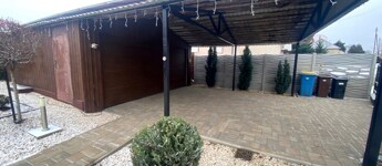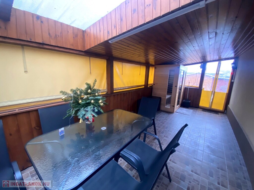 A lakótérhez egy 27 m²-es terasz kapcsolódik, valamint a kertben helyet kapott egy 24 m²-es fedett filagória, amely kiváló helyszíne lehet családi és baráti összejöveteleknek.A pihenést és feltöltődést saját szauna teszi teljessé.