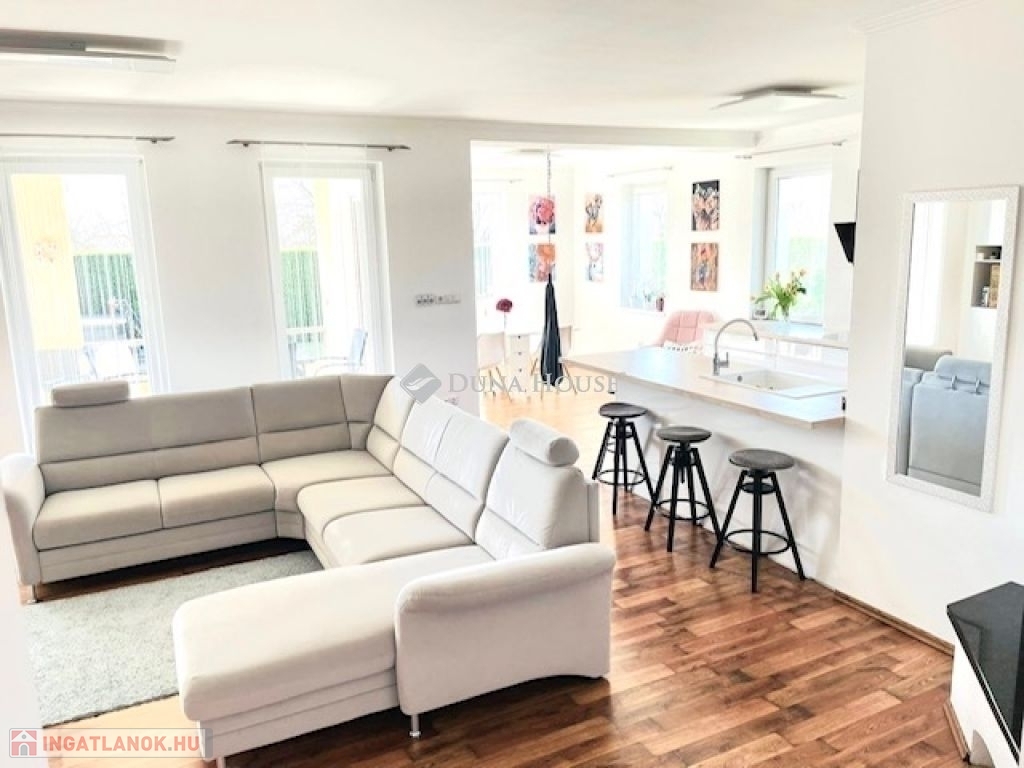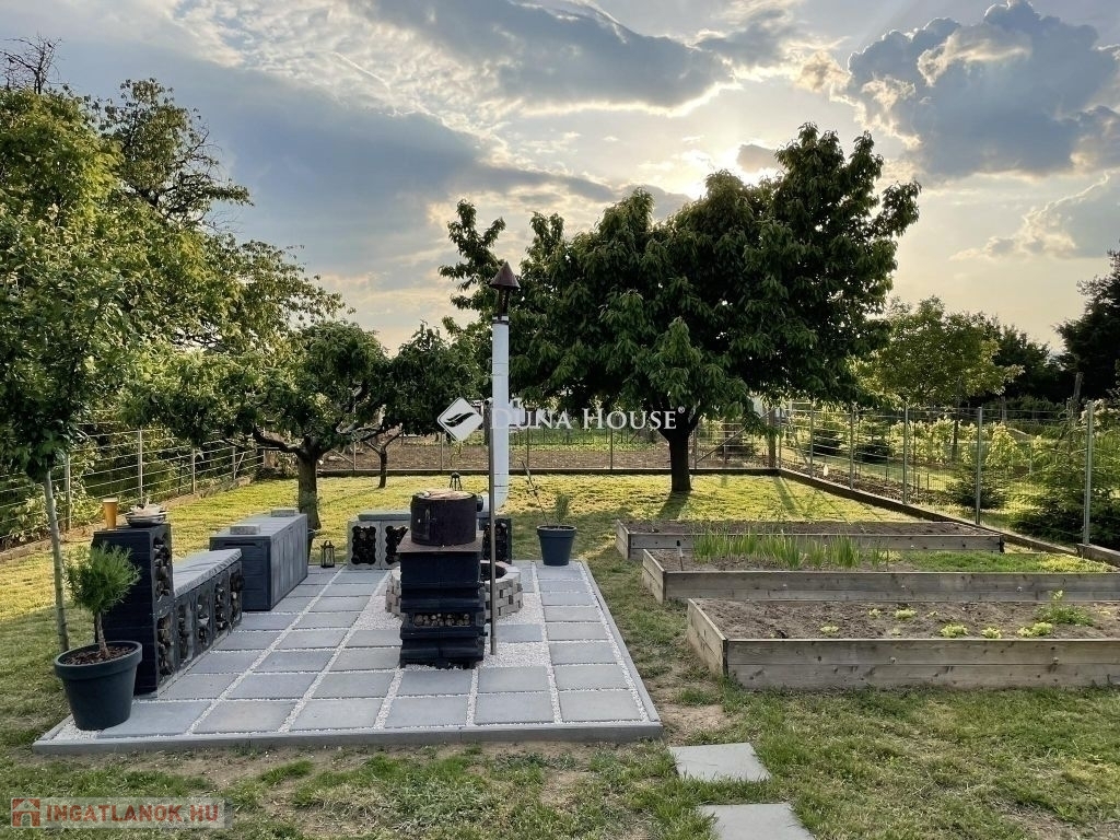 Modern családi ház PécsÚjhegyen napelemmel és dupla garázzsalPécs Újhegy csendes részén, a Barázda utcában eladó egy 2010-ben épült, egyszintes családi ház, amely ideális választás lehet családok számára.164 m² összterület 132 m² lakótér 32 m² kétállásos garázsHelyiségek: amerikai konyhás nappali étkezővel 3 hálószoba gardróbszoba 2 fürdőszoba + vendég WC kamra és háztartási helyiség 20 m² fedett teraszFőbb műszaki jellemzők:Viessmann gázkazánpadlófűtés és radiátorvízteres kandallóHoneywell helyiségenként szabályozható fűtés5,2 kW klíma3x25 Amper 7 kW napelem rendszer szaldó elszámolással 2030.12.31-igExtrák: elektromos alumínium redőnyök elektromos garázskapu és kertkapu riasztórendszer és kamerarendszer vízlágyítóUdvar: * telepített robotfűnyíró* privát kert Leylandi sövénnyel* privát játszótér* kerti sütő / grill rész* 10 m² faház* fatároló* finn szauna és jakuzzi* 10m3-es ciszterna gépesítve öntözésre* gyümölcsfákNyugodt, családi házas környezet, tágas és világos terekkel.Minden adott, hogy ez legyen az új, komfortos otthona.Érdeklődés esetén keressen bizalommal. Tekintsük meg együtt, hogy személyesen is meggyőződhessen, ez amit eddig keresett!