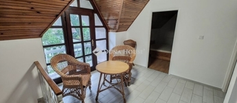 A földszinten tágas nappali, részben szeparált, teljesen gépesített konyha (indukciós főzőlap, mosogatógép, külön hűtő, mikró), valamint fürdőszoba épített zuhanyzóval és külön WC található. Az emeleten a tetőtérben egy társalgótérből nyílik három külön bejáratú hálószoba és egy második fürdőszoba WC-vel és nagyméretű, 90x90-es sarokzuhanyzóval.