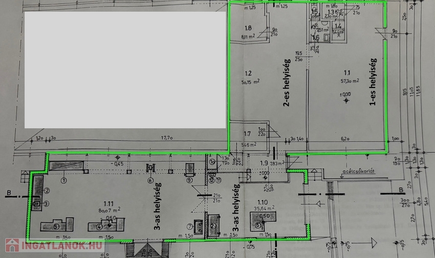 613m2-es telken lévő (nettó 274 m2 épület, 60m2 vasszerkezetes tároló) plusz a hozzá tartozó teljesen betonozott parkoló 150 m2.