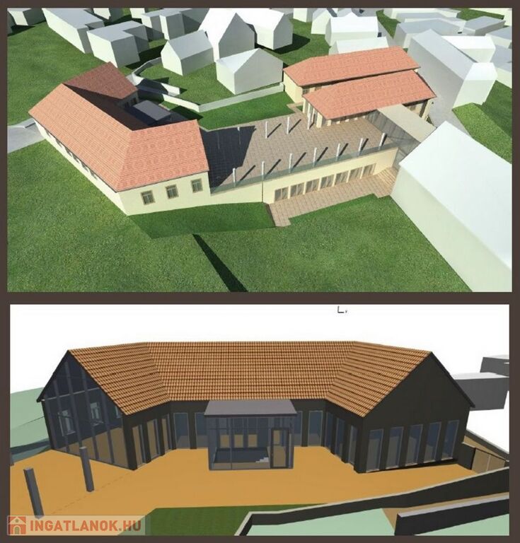 Pannonhalma Fő terén és a Váralján, 4.399 m2-es, 50%-ban beépíthető, településközponti vegyes övezetben elhelyezkedő telken,1.588 m2-es felépítmény eladó.