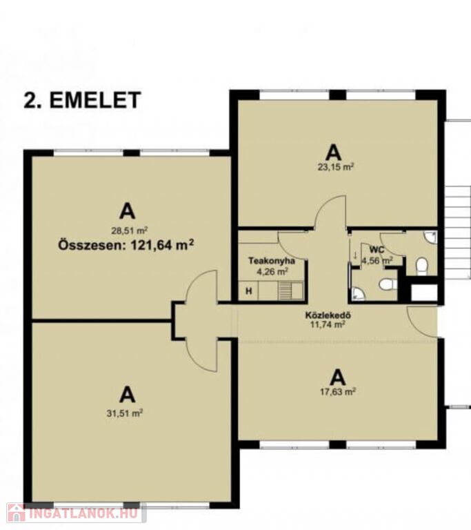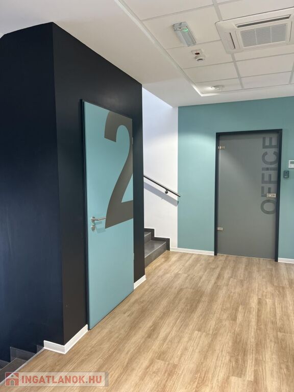 A jelen hirdetésben szereplő iroda a 2. emeleten található 122 m2, 4 irodahelyiségből áll. ezen felül saját mosdó és teakonyha is megtalálható az irodában.