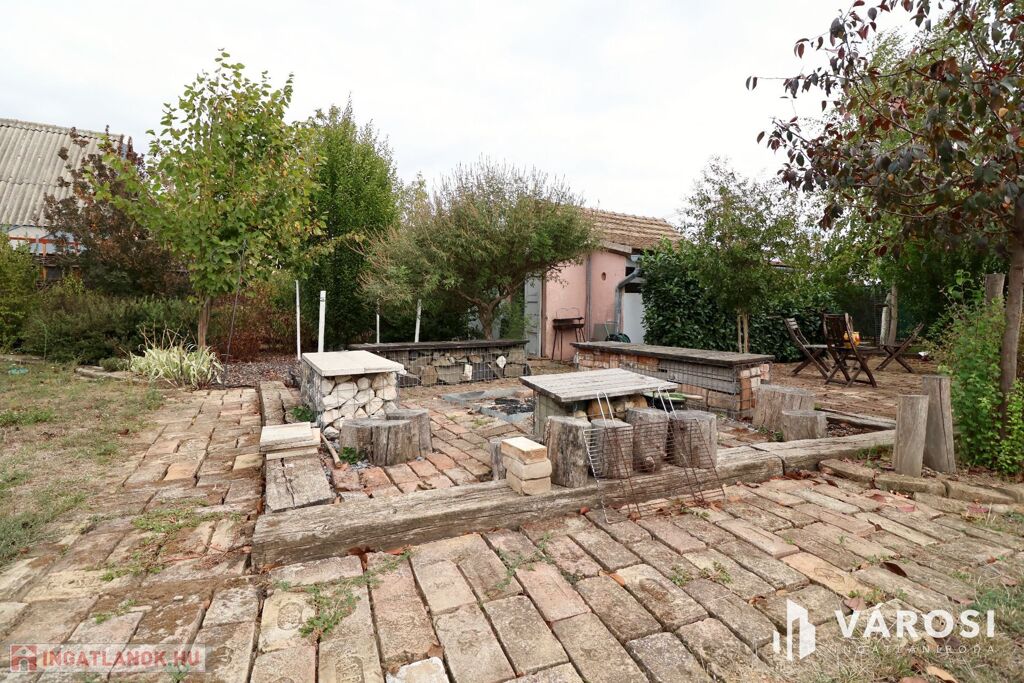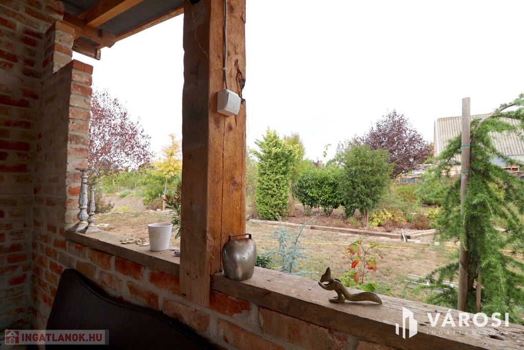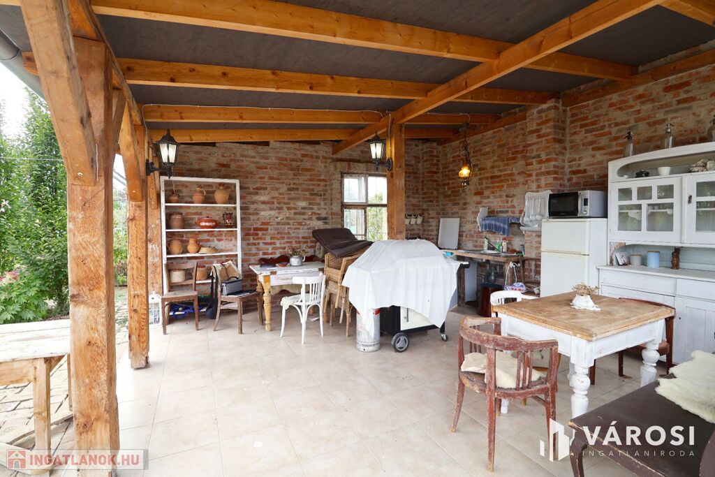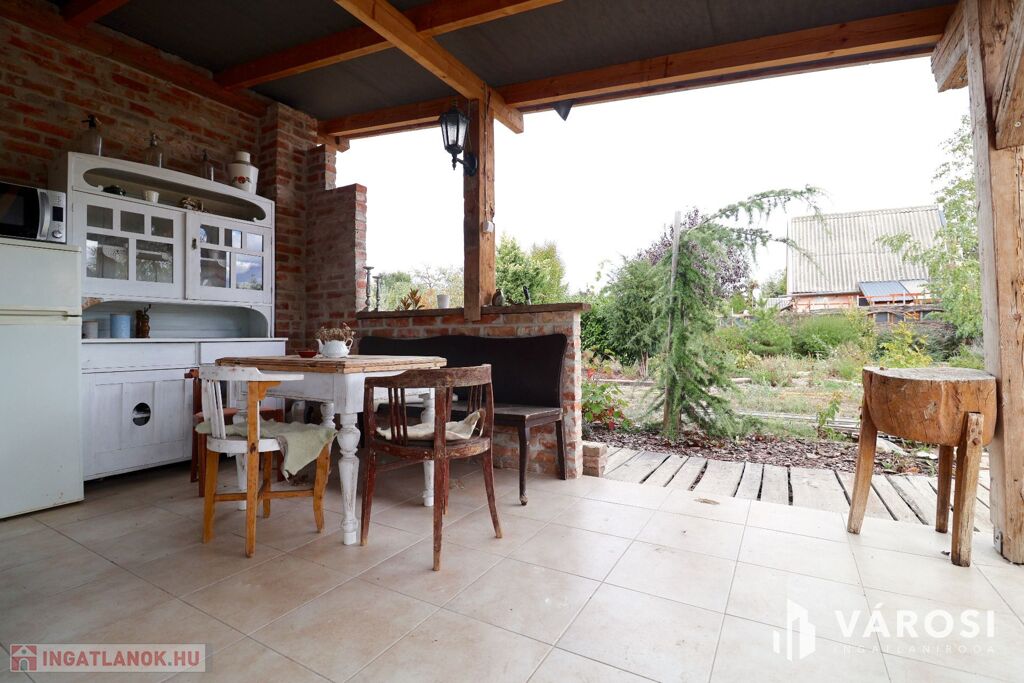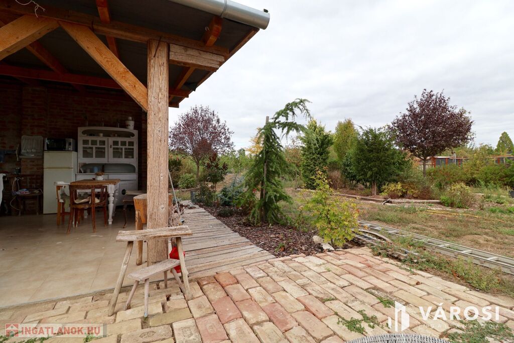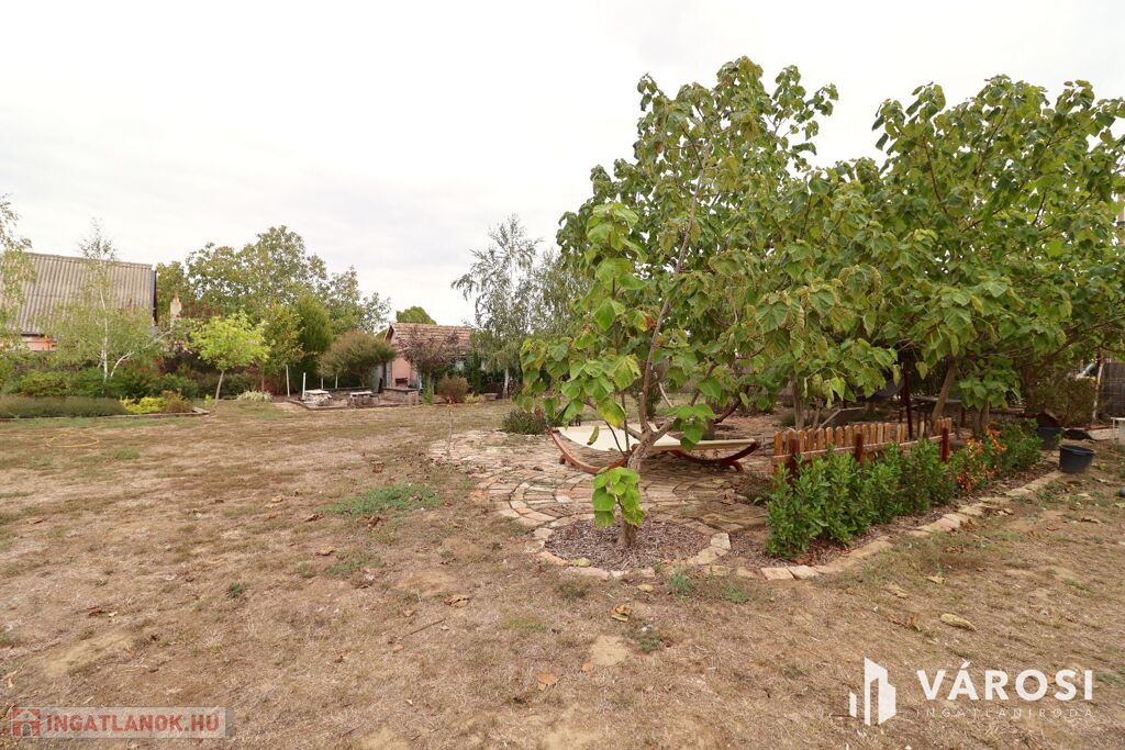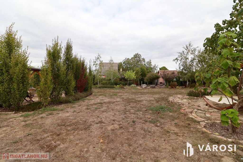Eladó Öregkishomokon 2965 m2 területű kerítéssel körbezárt kert. Szépen beültetett, gondozott, sok lehetőséget magában hordozó telek. 3x16 amper van bevezetve, van ivóvíz, és a gázcsonk a telken belül. Csatornázás még nincs kialakítva Öregkishomokon. A fedett terasz és nyári konyha épületéhez kapcsolódva kialakítottak egy wc és tusoló helyiséget is. A növények gondozásához fúrt kút is rendelkezésre áll. Szeged autóval 15 perc, Vásárhely 10 perc alatt elérhető.