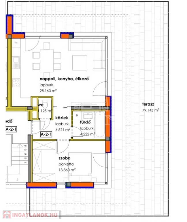 A hirdetett lakás 52 m2-es nappali+2 szobás 79 m2-es panorámás terasszal!