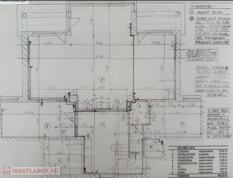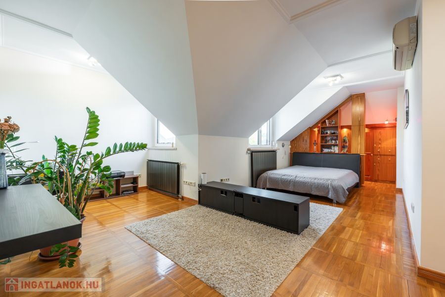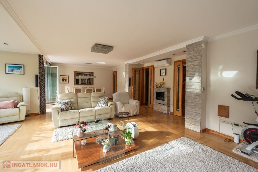 Nettó alapterület: 210 m² (102m² + 108 m²), két szintes elrendezés, több szinten elkülönített funkcionális zónák.