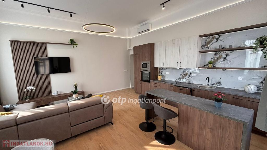 Eladó egy 124 nm-es, teljeskörűen és igényesen felújított lakás egy szép, liftes társasház harmadik emeletén. A minőségi anyagokkal végzett felújítás során a praktikum és az elegancia tökéletes egyensúlyára törekedtek, így egy tágas, világos, jól átgondolt elrendezésű otthon született. A nappali és a konyha egy térben kapott helyet, így kiváló közösségi élményt nyújt, míg a négy külön nyíló hálószoba biztosítja a család minden tagjának a nyugalmat.