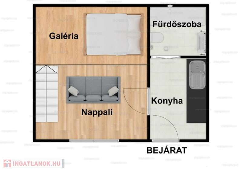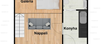 A lakás területét egy galéria növeli. A fürdőszoba és a konyha teljes felújításon esett át, így alkalmas az azonnali költözésre.