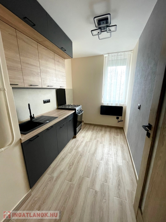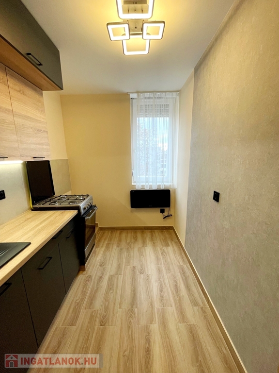 Nyíregyházán, a Víztorony közelében kínálok eladásra egy teljes körűen felújított, azonnal költözhető, 49 m²-es lakást, amely egy szigetelt, téglaépítésű társasház 4. emeletén található, a belváros közelében. A lakás modern kialakítású, praktikus elrendezésű, burkolatai járólap és laminált kombinációja. Új, gépesített konyhabútorral rendelkezik elektromos főzőlappal, a fűtésről két gázkonvektor és egy hűtő-fűtő klíma gondoskodik. Tartozik hozzá külön tároló és udvari parkolási lehetőség is biztosított. A társasház rendezett, jól karbantartott és szigetelt. A lakás esztétikailag és műszakilag is újszerű, alacsony fenntartási költségekkel, így ideális fiataloknak, pároknak.