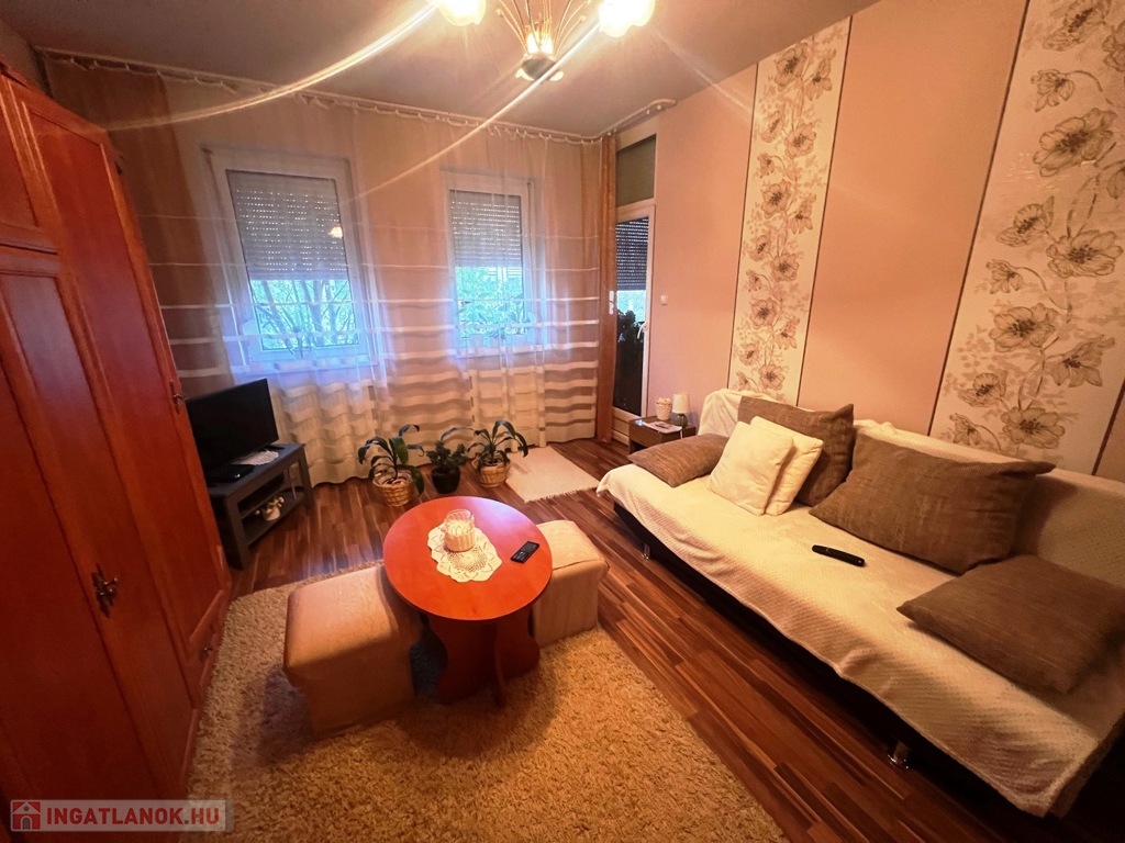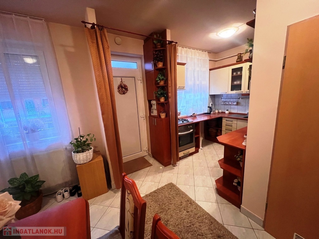 A lakás jó állapotú, műanyag nyílászárókkal és redőnyökkel felszerelt. A burkolatok járólap és laminált padló. A konyhában beépített konyhabútor található. A fürdőszoba és a WC külön helyiségben kapott helyet. A fűtést egyedi gázfűtés biztosítja.